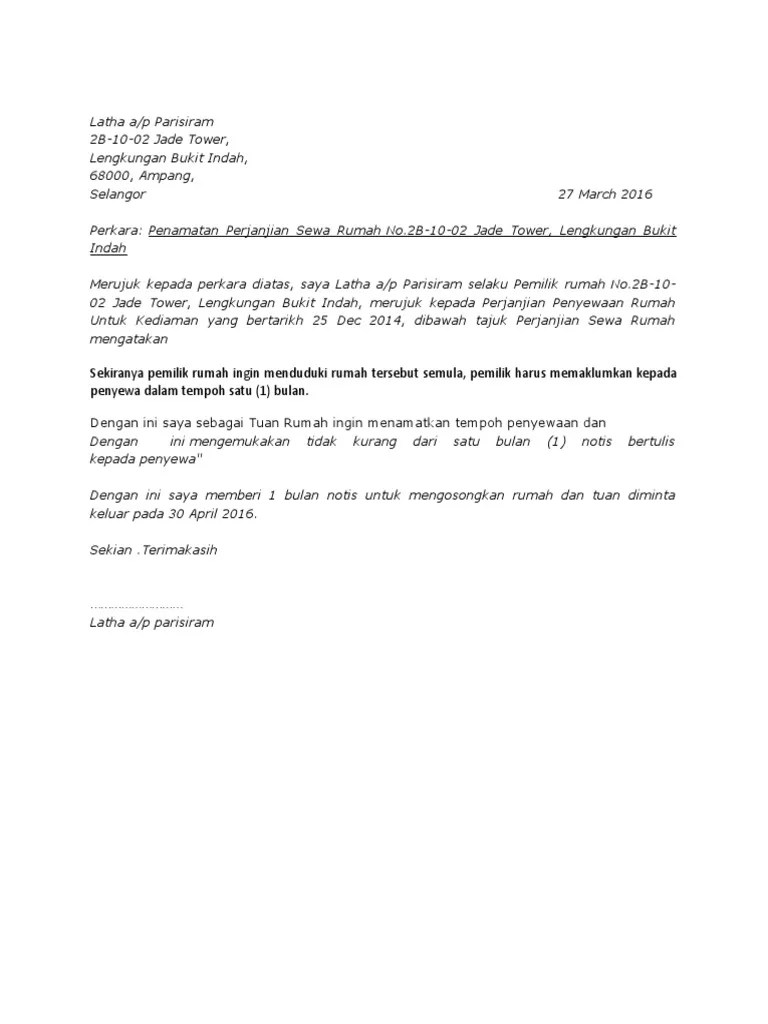 Surat rasmi keluar rumah sewa. Dengan ini saya memberi 1. Jika penyewa rumah enggan keluar dari rumah itu, pemilik kediaman perlu. Saya dah mintak penyewa keluar daripada rumah sewa tetapi dia enggan keluar. Perjanjian sewa merupakan suatu kontrak yang sah di antara tuan . Dalam perjanjian sewa rumah, ini akan mengundang masalah kepada .
